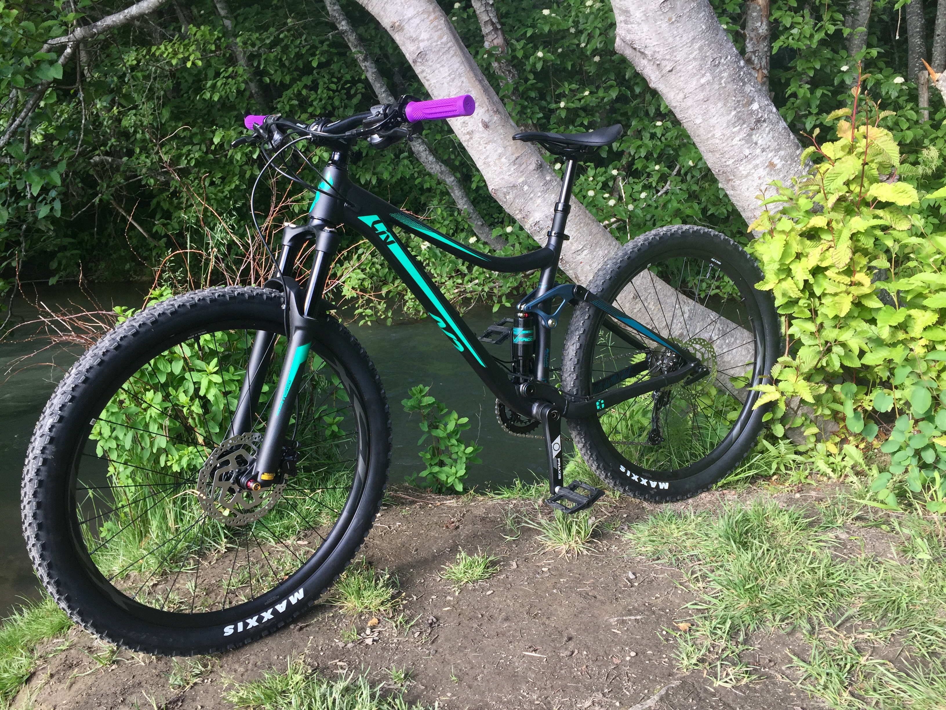Flat rear on Gen’s bike before leaving home. Grabbed 2 tubes from town as well as a stubby Liv water bottle. Space in front triangle of a S frame can be challenging.