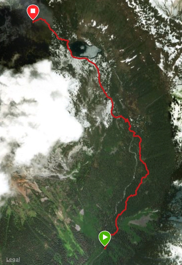 Marriot Basin Trailhead lays at the end of this road at 1399m. Less than 1km into the hike at 1510m you will reach a signed intersection. R heads to Rohr lake and access to Rohr Mountain while L option holds access to the lower lake and then W.T.H.