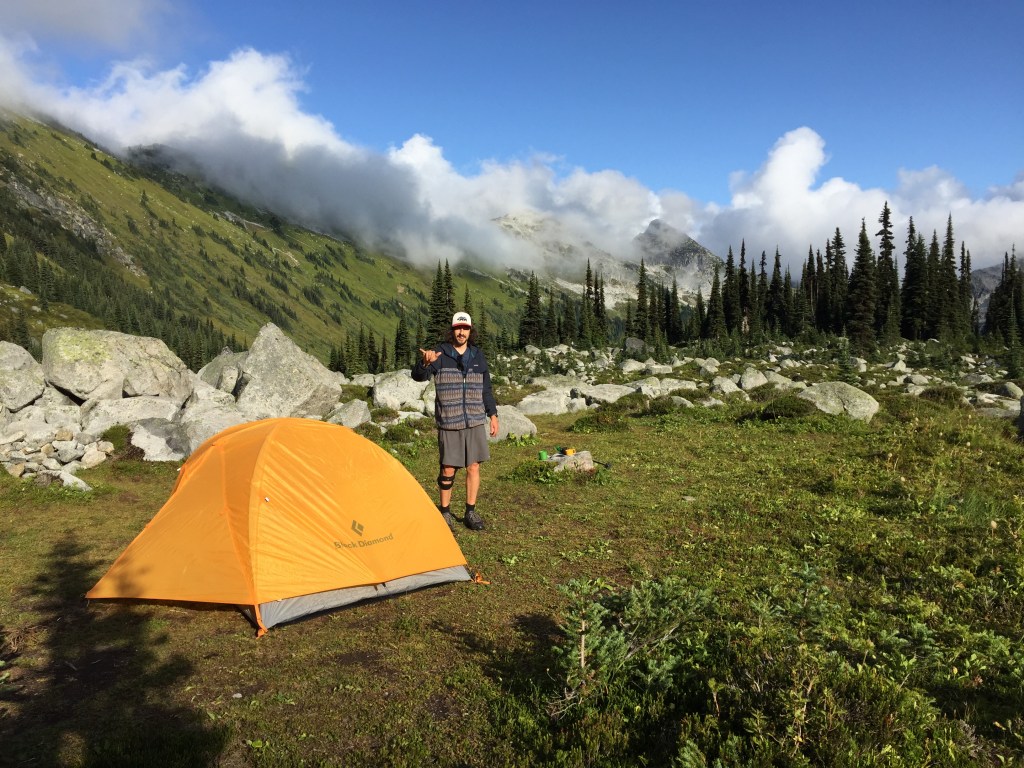 This was a last minute decision for us. We abandoned an objective with more elevation gain in favor of an easier approach on a post-op knee. As a result we did not have a reservation so brought a tent. Gen happily carried everything heavy and my pack was laughable with only sleeping bags and air mattresses.