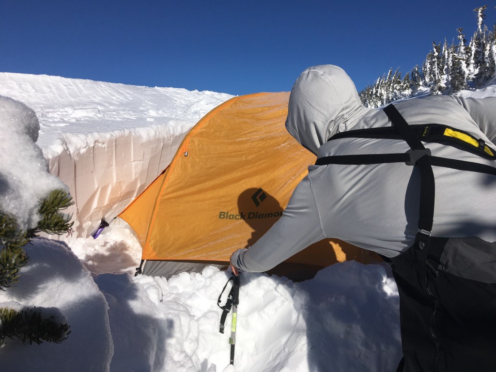 When searching for a winter tent consider a robust fly and weather the frame will support potential snow accumulation. Ventilation is also important when considering water loss during respiration. If this cannot escape it will build up and freeze on your tent walls. For separation, and desire to bring packs inside, we up-size our tent but pay for it when carrying.